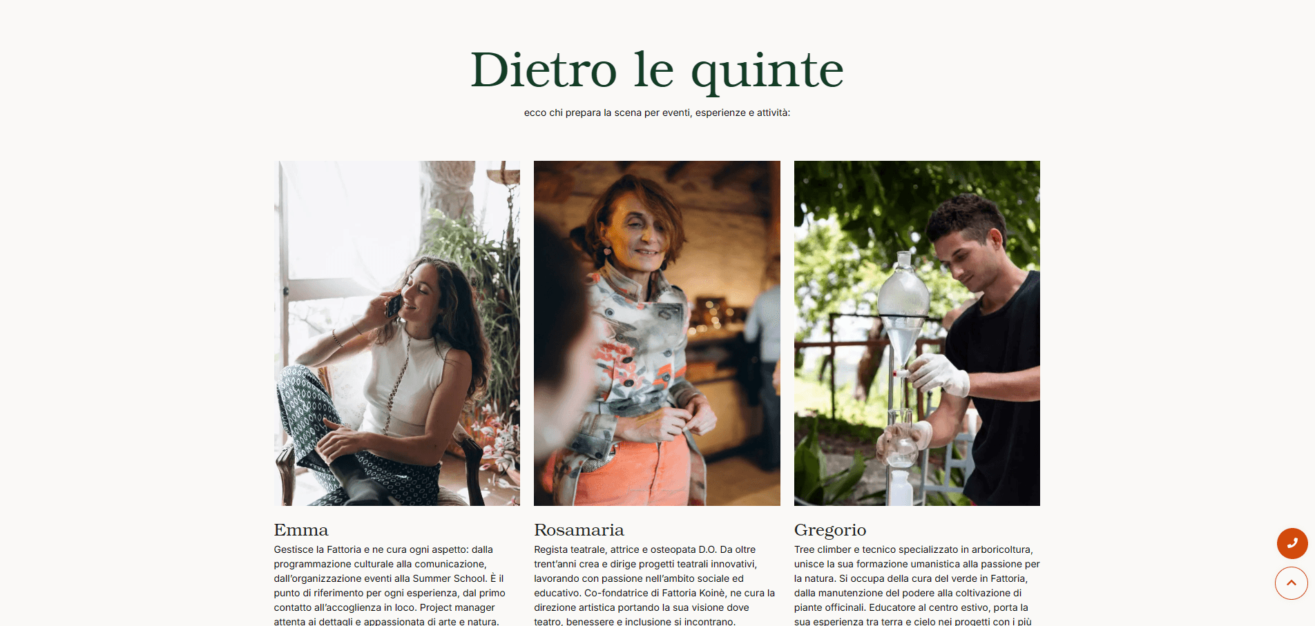Il sito web da lei immaginato doveva saper raccontare bene le tante attività ospitate in Fattoria, in particolare rivolgendosi alle aziende, il target principale. Inoltre, doveva contenere informazioni che andavano a spiegare punto per punto come funziona alloggiarci, come sono organizzati i gruppi, gli eventi e il centro estivo, cosicché Emma potesse reindirizzare sul sito le persone interessate e passare meno tempo a rispondere al telefono e alle mail.